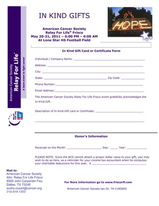 In Kind Donation Form Fill Online Printable Fillable Blank Pdffiller